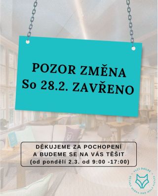 Z provozních důvodu sobota 28.2.2026 zavřeno. Děkujeme za pochopení!
