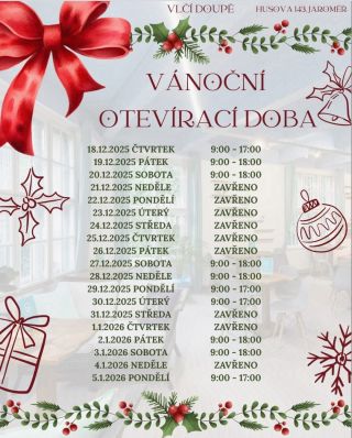 Budeme se na Vás těšit 27.12.2024 od 9:00 hod. Děkujeme za pochopení! Přejeme KRÁSNÉ VÁNOČNÍ SVÁTKY A ŠŤASTNÝ NOVÁ ROK,