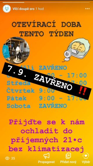 Sobotu 7.9.2024 zatím necháváme zavřenou