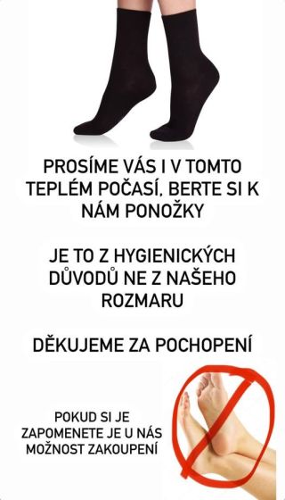 Prosíme o vstup v ponožkách!! Je to z hygienických důvodů, jelikož chodíte po kobercích a podložkách na které si děti lehají a pokládají hračky. Pokud zrovna u sebe ponožky nemáte je možnost si u nás zakoupit. Děkujeme za pochopení!!