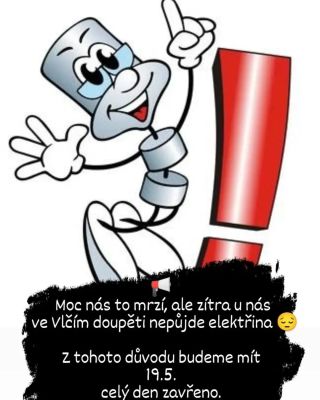 19.5.2023 nepůjde elektřina - omlouváme se bude zavřeno